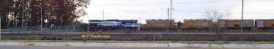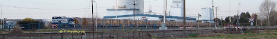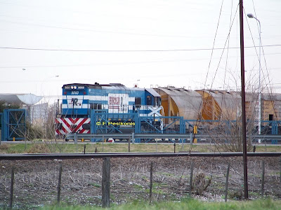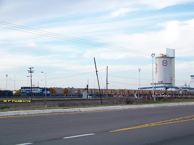Unas vistas de Ferrosur en Vicente Casares. La 9060 y sus tolvas cementeras.