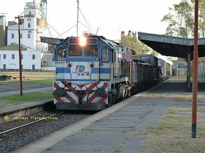 Tren de Ferrosur Roca, traccionado por la GT22 9020, fotografiado en Azul el 01May12.