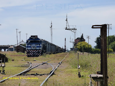 Algo de actividad en estacion Cnel Pringles: la NREC 2004, la GE 2000, con la grua Takraf.