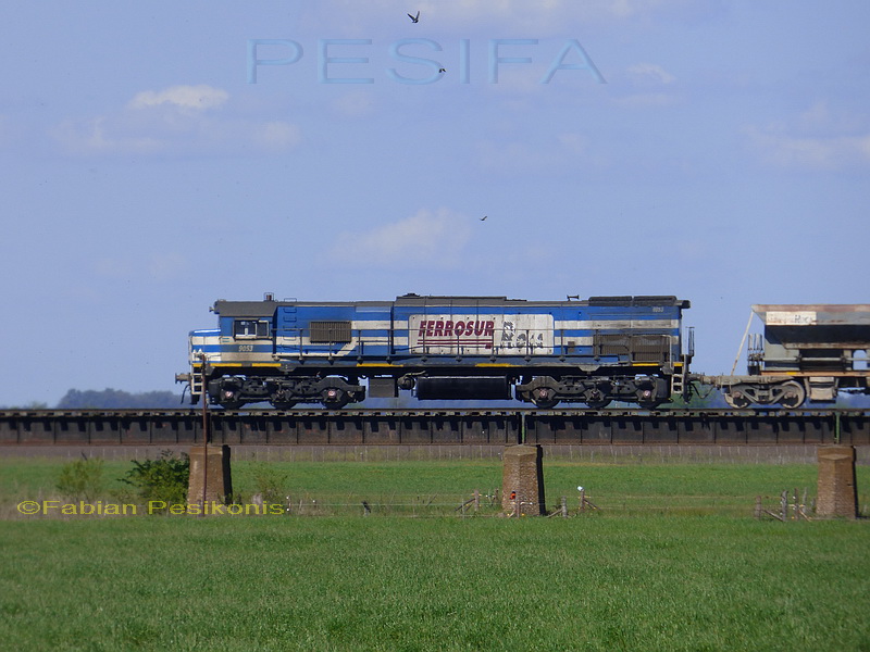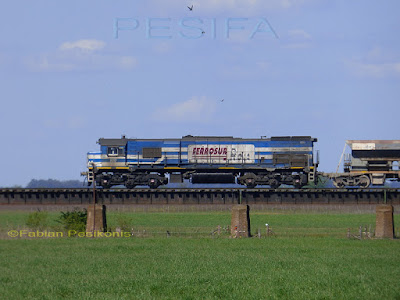 GT22 9053 saliendo de estacion Gorch, ya sobre el rio Salado. Fotografias 13Oct18.